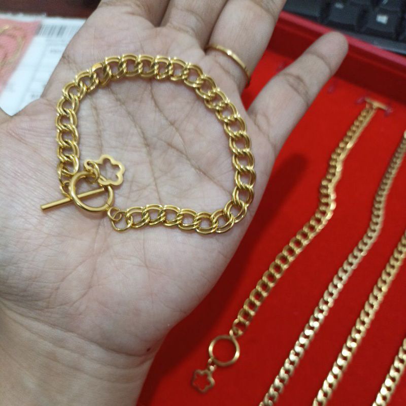 Emas ni sama jer, macam emas 916. Sedangkan, untuk emas palsu tidak ada tulisan seperti itu atau tidak. Karena ini adalah produksi lama sebelum digantikan emas 375. Banyak orang yang lupa untuk merawat perhiasan emas, sehingga membuat warna emas jadi pudar, bahkan mudah patah. Warna ini tidak akan luntur dan kekal jika cara pemakaian dan penjagaan barangan kemas dilakukan dengan betul.